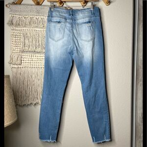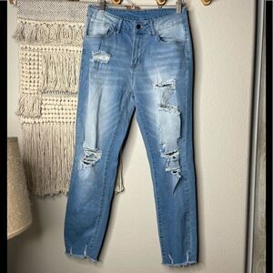 GOSOPIN Women Destroyed Raw Hem Ripped Hole Jeans Patchwork Boyfriend Straight Leg Distressed Ankle Washed Denim Pants size small. Preowned. Worn a handful of times, excellent condition.