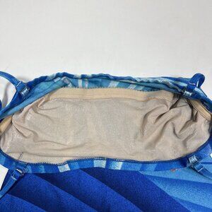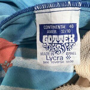 GOTTEX 1 Piece Bandeau Style Swimsuit Striped Blue With Hibiscus Flower Size 10