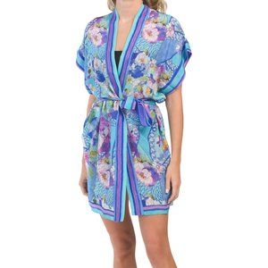 GOTTEX $298 100% Silk Samosir Belted Kimono Cover-up S