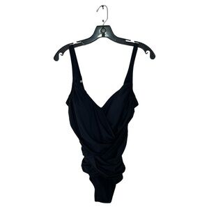 GOTTEX Lattice Square Neck One Piece Swimsuit in Black Size 10