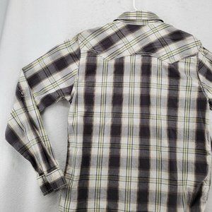 GPH Supply Co. Shirt Men's Pearl Snap Up Long Roll-Tab Sleeve Plaid Gray Medium