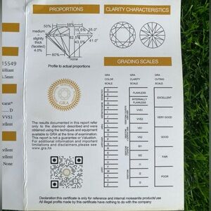 Diamond clarity grade: Very, Very Slightly Included (VVSI)