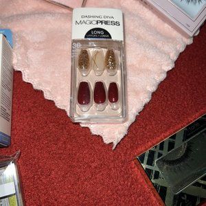 Nails: Dashing Diva Gloss Gel Palette (Imperial Jasper), Dashing Diva Palette (Imperial Jasper), Dashing Diva Gloss Palette (Marble Moment), Dashing Diva Vamp Vixen Magic Press (Long), Dashing Diva Bored Games Magic Press (short), Dashing Diva Red Therapy for Gloss Strips (Base), Dashing Diva Red Therapy for Press (Base), Plus an additional 3 more items for nails and an Essie Bag