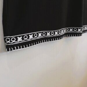 Grace Elements - Sleeveless, Black, v-neck, shift, white embroidered floral detail on top front/back & bottom hem w/silver embellishments, stitch detail around neck, arm holes, & hem.