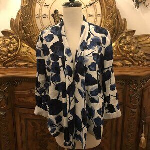 GRACE ELEMENTS. Size 4. Linen Open Front Floral Jacket. Roll-up Sleeves. B17