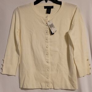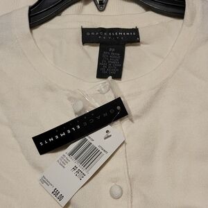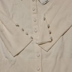 GRACE Elements Cotton White 3/4 Sleeve Cardigan Sweater