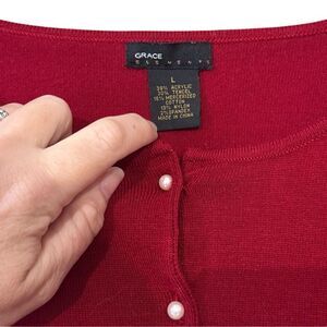 GRACE Elements Red Pearl Button Down Cardigan Sweater Size Large