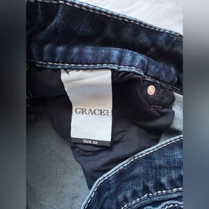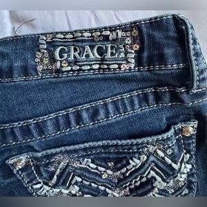 GRACE IN LA WOMEN'S JEANS - AZTEC Grace Medium Blue Flare Jeans