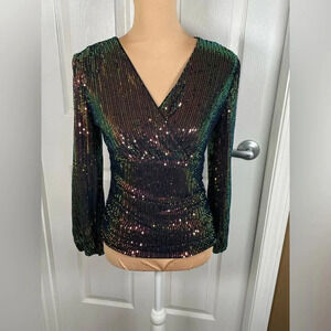 ✨ GRACE KARIN Sequin Top Long Sleeve Sparkly Dressy Tops Ruched Wrap Blouse S