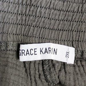 GRACE KARIN Solid All Green Pull On Crop Pants with Pockets Womens Size 2XL