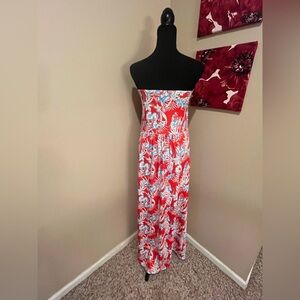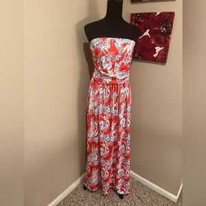GRACE KARIN Strapless Ruched Top Maxi Dress with Pockets Floral Red, size XL