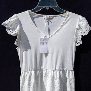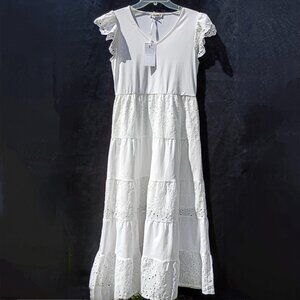 GRACE KARIN White Eyelet Dress Womens M Medium Flutter Short Sleeve Long Modest