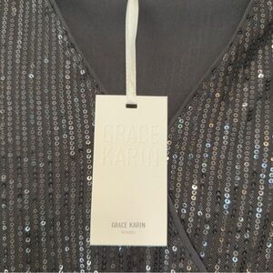 GRACE KARIN Womens Sequin Tops 3/4 Sleeve Glitter Sparkly V-Neck Top Size M NWT