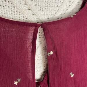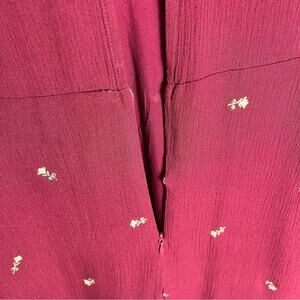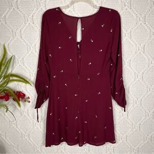 GRACE | Long Sleeve Midi Dress Floral Embroidered Burgundy L