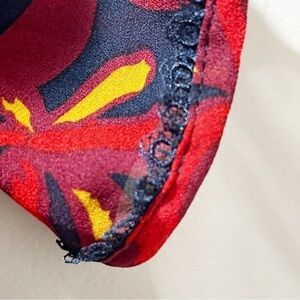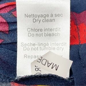 GRACE & MILA Women’s Navy Red Floral Chiffon Pleated Long Sleeve Blouse Size M