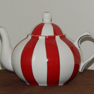 GRACE TEAWARE Fine Porcelain Teapot Holiday Carousel Red White Gold Stripes New