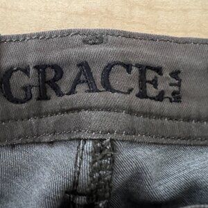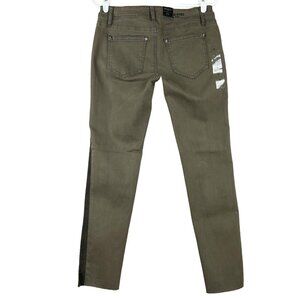 GRACE in LA Women's Jeans Size 29 Skinny Stripe Side Stretch Raw Hem Olive Green