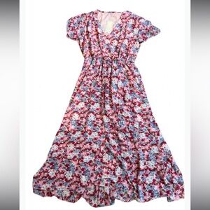 GRACEASY DRESS PINK WHITE FLORAL PRINT FIT FLAIR WRAP SUMMER DRESS SIZE XL NET