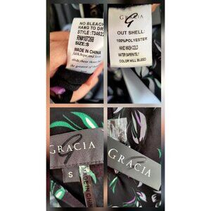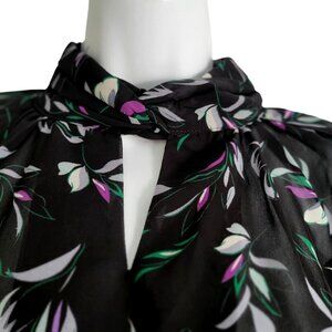 GRACIA Black Floral Chiffon Blouse Keyhole Neckline & Buttoned Cuffs -S