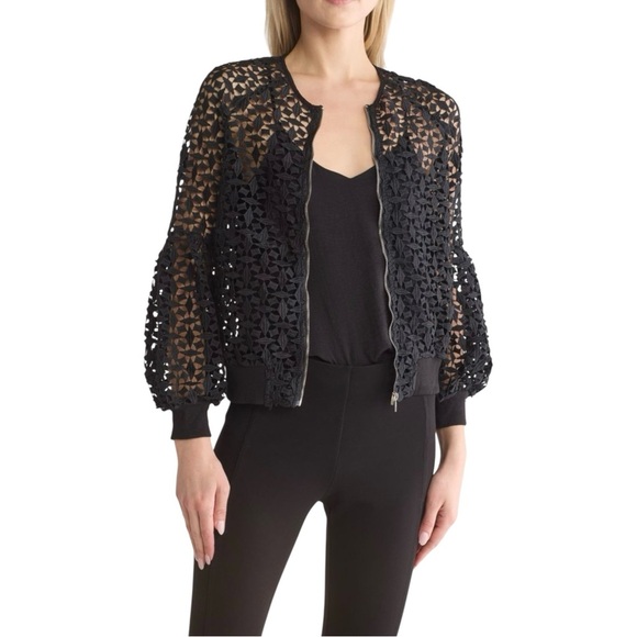 GRACIA Lace Bomber Jacket, Front Zip, Women’s, Color Black, Size Medium