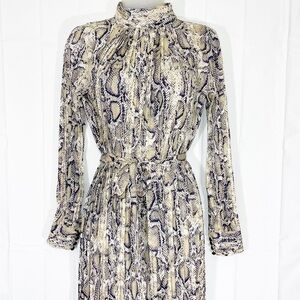 Gracia Gray Snake Printed Pleated Maxi Dress