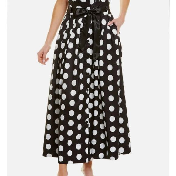 This skirt is fabulous!! Surplus fabric makes this full-length A-line black & white polka dot classic a twirl-worthy head turner that is sure to leave an impression. High ruffled waistline- hip pockets and black satin self-tie sash loops for this or any belt you choose-1950’s vibe with modern on-trend crafted from lightweight fabric with lovely drape. 100% Polyester