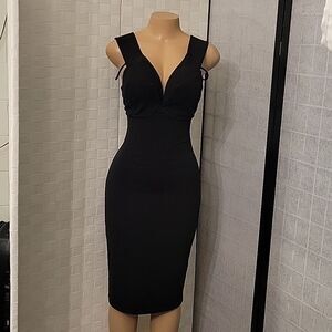 GRACIE V-NECK SLEEVELESS A-LINE STRETCH WOMEN"S DRESS SIZE LARGE COLOR BLACK 94%POLYESTER AND 6%SPANDEX