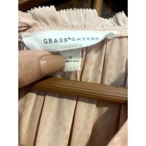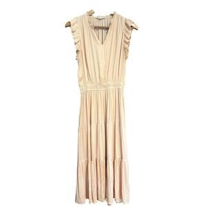 GRADE & GATHER Satin Tiered Midi Dress Flutter Sleeve Pockets FEMININE Small S