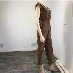 GRADE & GATHER jumpsuit sleeveless V-neck stripes elastic waist straight leg/retro/office/elegant/night out