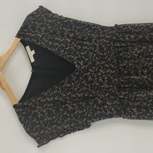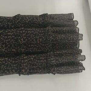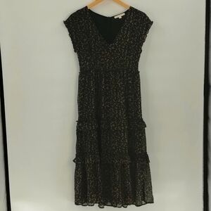 GRADE & GATHER midi dress ruffle satin size small black brown tiered floral