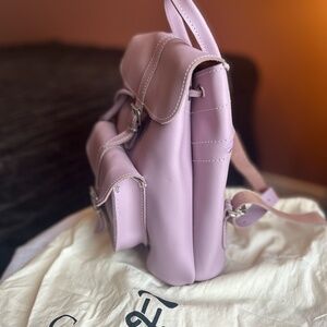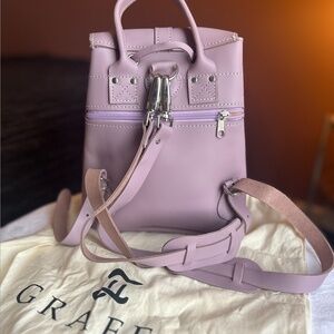 This GRAFEA - Lilac Women's Leather Backpack is in excellent condition. Worn/used once outside. Still has new leather smell. Adjustable shoulder straps. Beautiful lavender/lilac coloring. No damage or scuff marks.