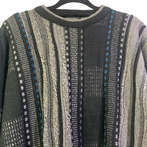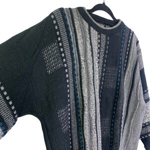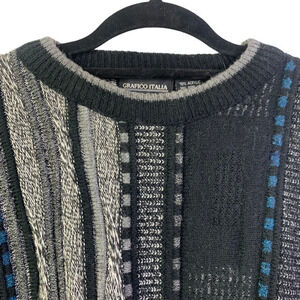 GRAFICO ITALIA Black & Gray Vintage Abstract Striped Wool Blend Sweater