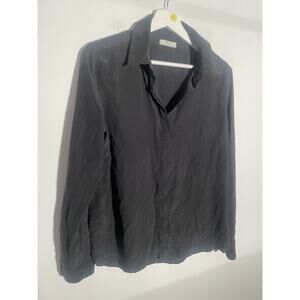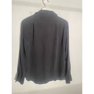 GRANA Silk Button Up Long Sleeve Top Green Button Black Size Large