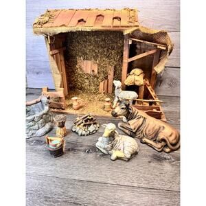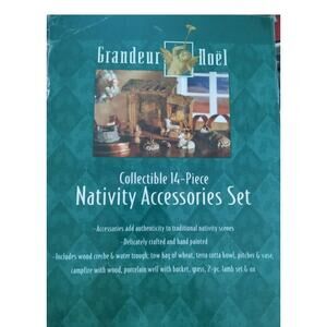GRANDEUR NOEL 14 pc Porcelain NATIVITY ACCESSORIES SET & WOOD CRECHE Christmas