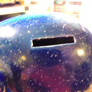 Beautiful blue ceramic pig with the sign saying "FOR THE GRANDKIDS" on the side. Resembles blue granite, but is ceramic. Measures 7" x 6" x 4.5" Does have the stopper!