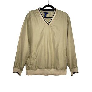 GRANT THOMAS Men’s V-Neck Sweater Long Sleeve Medium Pullover Golf Tan Brown
