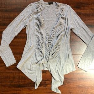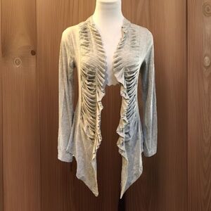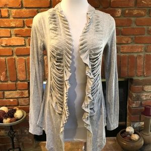 GRASS Collection sz S BoHo Hippie CHIC Light Gray Ruffle Overlay Draping Jacket