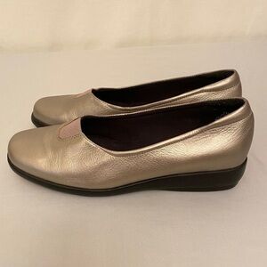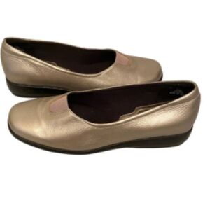 GRASSHOPPERS Pewter Color Comfort Slip On Preowned Shoes Size 7 Leather With Small elastic band for ease of putting on. The only sign of wear are a few tiny surface scratches at the right toe area, which are not noticeable when worn. These shoes are comfortable and great-looking. You will want to wear them everywhere! SO 81