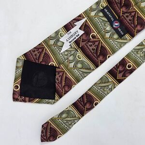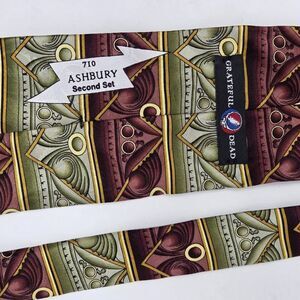 GRATEFUL DEAD ASHBURY SECOND SET SILK TIE GREEN BROWN HAND MADE USA 3.75" X 57"