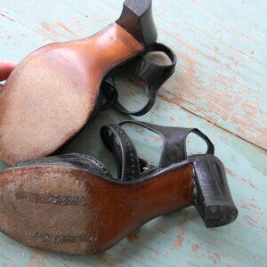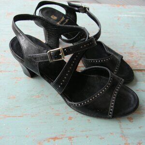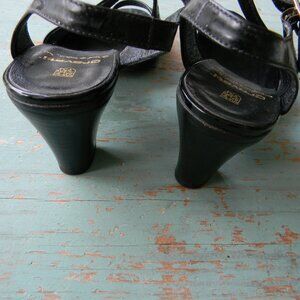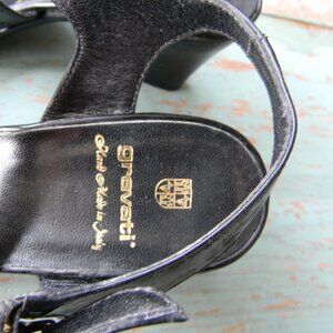 GRAVATI MADE IN ITALY BLACK OPEN TOE LEATHER BLOCK LOW HEELS SZ 7.5M