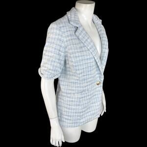 GRAVER Susan Graver Knit Tweed Short Sleeve Blazer Wind Blue Small Career