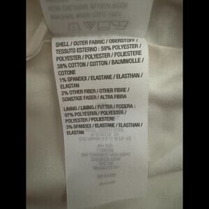 Content: shell 59% polyester/38% cotton/1% spandex; lining 97% polyester/3% spandex