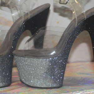 GRAY & BLACK GLITTER PLEASER HEELS I NO LONGER HAVE THE BOX FOR THEM SIZE 7