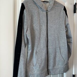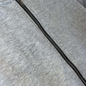 GRAY Bebe Sport zip hoodie silver sparkly rhinestone BEBE Distressed sleeve Med