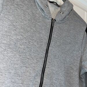 Gray Bebe Sport zip hoodie silver sparkly rhinestone BEBE