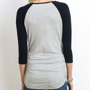 Keep it casual with the classic sporty look of this raglan tee that features convenient side ruching to accommodate your growing curves.