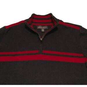 1/4 ZIP SWEATER IN XLT GRAY AND RED STRIPES COTTON SWEATER BY EDDIE BAUER FOR MEN
