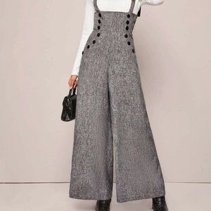 GRAY LINEN LOOK POCKETED SUSPENDER JUMPSUIT CHIC CLASSY FALL WINTER