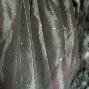 THE ROSE IS NOT INCLUDED. REFLECTORS ON THE DRESS ALONG WITH METALLIC SHIMMERY threads. NO HOLE RIPS OR TEARS.