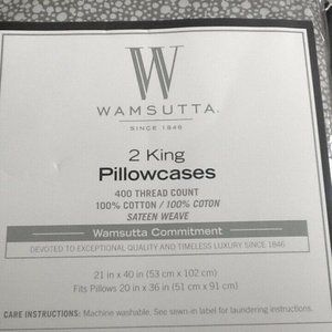 Set of 2 Wamsutta 400 Thread Count Cotton Sateen King Pillowcases. Finished Fabric: 21 inches X 40 inches ... fits pillows 20 inches X 36 inches. The manufacturer's name for the color / pattern is Gray / Pebble. Machine washable. Condition is brand new, factory-folded in unopened, undamaged, original retail packaging.